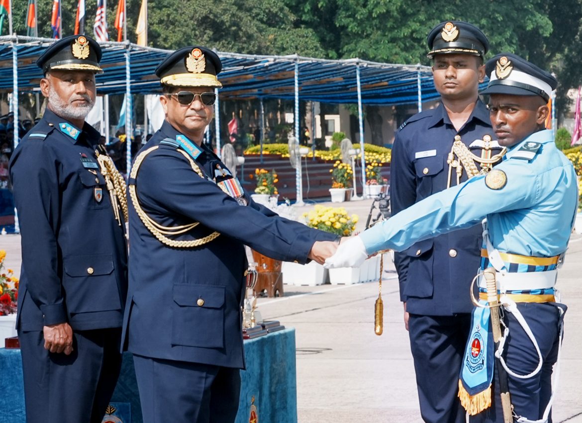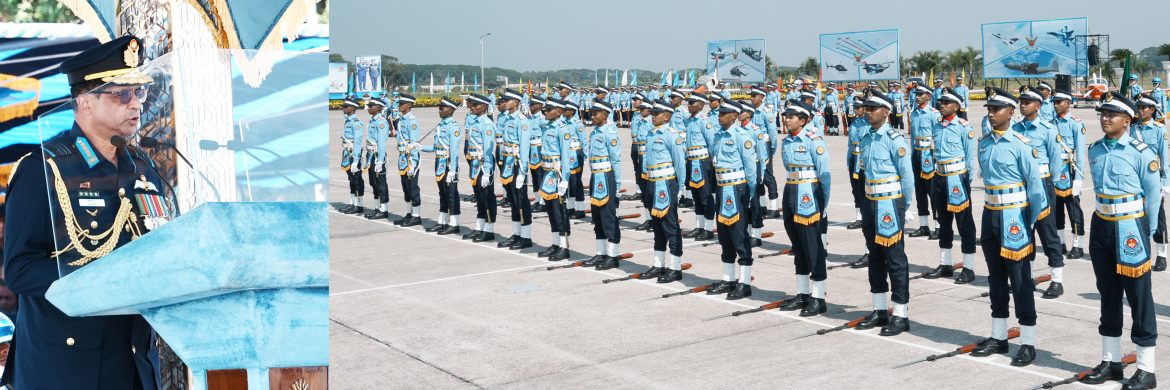The chief guest, Chief of Air Staff, Bangladesh Air Force remembered with deep respect all the freedom fighters and war-wounded freedom fighters who laid down their lives in the great Liberation War of 1971, whose immense sacrifices resulted in today's independent and sovereign Bangladesh. He also remembered the members of the Kilo Flight, who led the fearless and successful air campaign that created unwavering morale in the Liberation War and conducted adventurous aerial battles, whose strong conviction paved the way for the establishment of an independent and sovereign Bangladesh. He said that, the scope and demand of the armed forces have expanded worldwide. Keeping this goal in mind, the training system of the Air Force has been made more modern and up-to-date. He further said that state of the art training aircraft and simulators have been added to ensure better training of the future generation of the Air Force. It is a matter of pride for all of us that the reputation of the training quality of the Bangladesh Air Force Academy has become known in the international community today. Many members of the domestic and foreign military forces are participating in training at the educational institutions of the Air Force. Pilots of the Bangladesh Army and Navy are successfully receiving flying training from the Air Force Academy. So far, 30 foreign flight cadets have successfully completed their training from this academy. This has made the image of the Bangladesh Air Force brighter and stronger in the outside world. Finally, he wished success to the newly commissioned officers and thanked all the members of Bangladesh Air Force Academy.