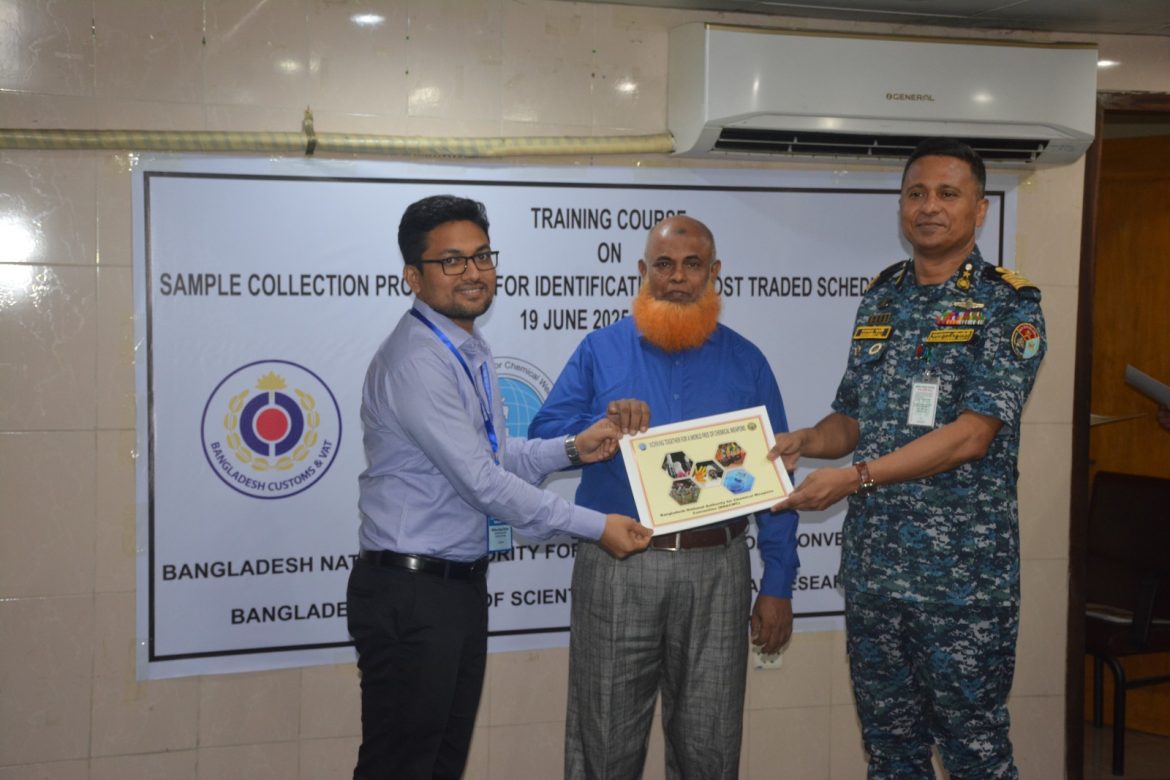 ঢাকা, ১৯ জুন ২০২৫ (বৃহস্পতিবার): শিল্পায়নের ফলে দেশে রাসায়নিক দ্রব্যের আমদানি এবং ব্যবহার ব্যাপকভাবে বৃদ্ধি পেয়েছে। দেশের সার্বিক নিরাপত্তার স্বার্থে তফসিলভুক্ত রাসায়নিক দ্রব্যের আমদানি অথবা পরিবহনের সময় কাস্টমস অথবা বাংলাদেশ পুলিশ কর্তৃক রাসায়নিক দ্রব্যকে সঠিক ভাবে চিহ্নিতকরণের লক্ষ্যে বাংলাদেশ বিজ্ঞান ও শিল্প গবেষণা পরিষদ (বিসিএসআইআর) এ Sample পাঠানোর প্রয়োজন পড়ে। এছাড়াও অনেক সময় আমদানিকৃত রাসায়নিক দ্রব্যের কন্টেইনারে রাসায়নিক দ্রব্যের রাসায়নিক নাম, Chemical Abstracts Service (CAS) রেজিষ্ট্রেশন নম্বরযুক্ত থাকে না বিধায় কাস্টমস অথবা পুলিশ কর্তৃক তফসিলভুক্ত রাসায়নিক দ্রব্য সনাক্ত করা সম্ভব হয় না। এ প্রেক্ষিতে কাস্টমস ও পুলিশ কর্মকর্তাদের এ ধরণের Sample সংগ্রহ ও পরীক্ষাগারে প্রেরণের জন্য বিএনএসিডব্লিউসি এবং বিসিএসআইআর এর যৌথ আয়োজনে “Sample Collection Procedure for Identification of most Traded Schedule Chemicals” শীর্ষক একদিনের একটি প্রশিক্ষণ কর্মশালা ১৯ জুন ২০২৫ তারিখে বিসিএসআইআর, এলিফ্যান্ট রোড, ঢাকায় আয়োজন করা হয়। উক্ত প্রশিক্ষণ কর্মশালায় বাংলাদেশ পুলিশের ১০ জন এবং জাতীয় রাজস্ব বোর্ডের ১০ জনসহ মোট সর্বমোট ২০ জন প্রশিক্ষণার্থী অংশগ্রহণ করেন।